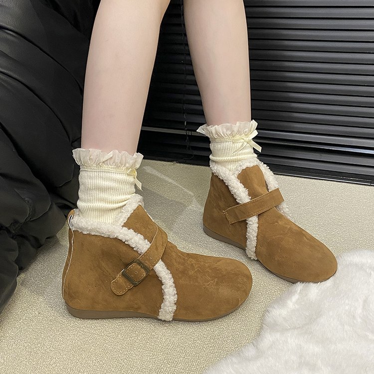 大码女鞋41到43宽胖脚秋冬鞋子脚掌加宽胖mm粗腿短靴加绒勃肯棉鞋
