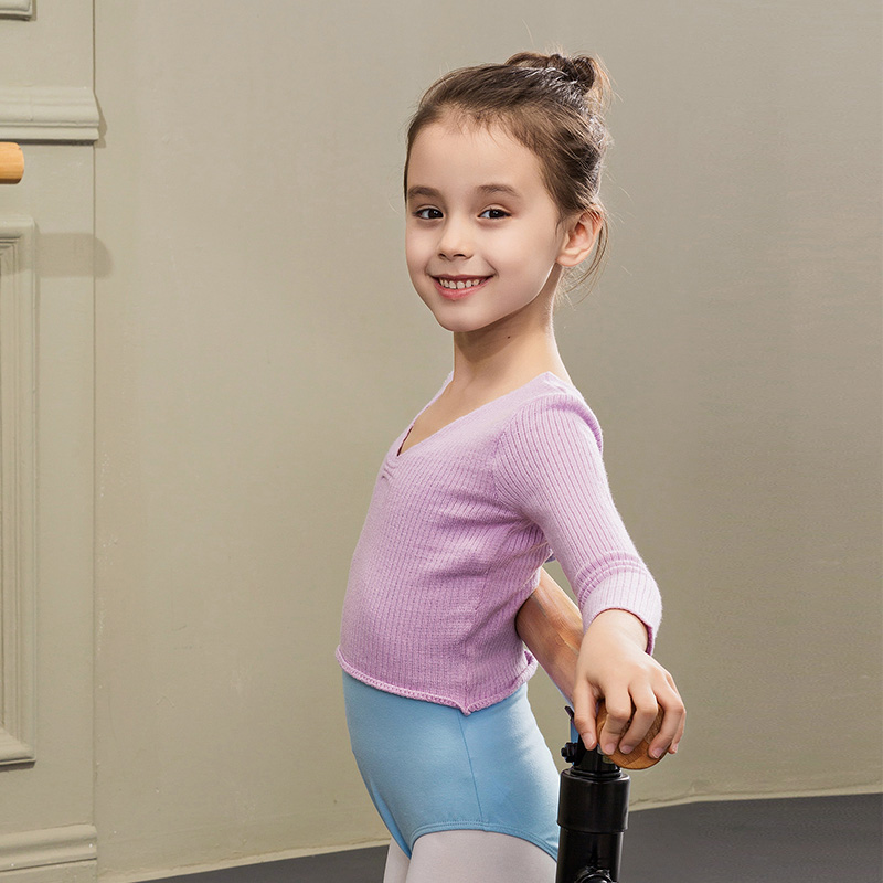 Sansha 法国三沙儿童V领秋冬七分袖保暖毛衫芭蕾舞蹈针织上衣外套