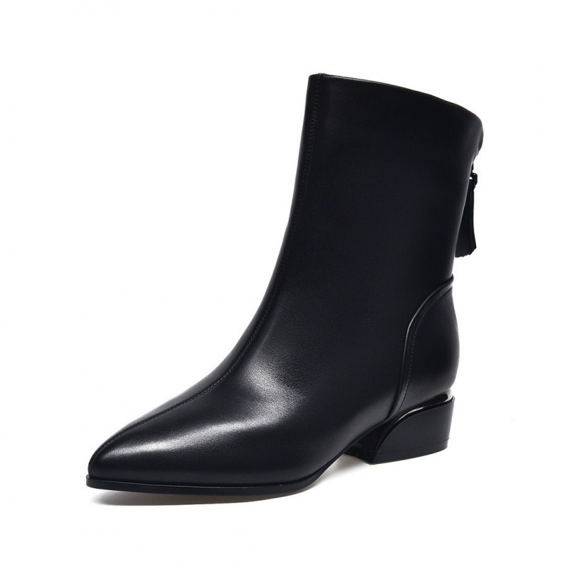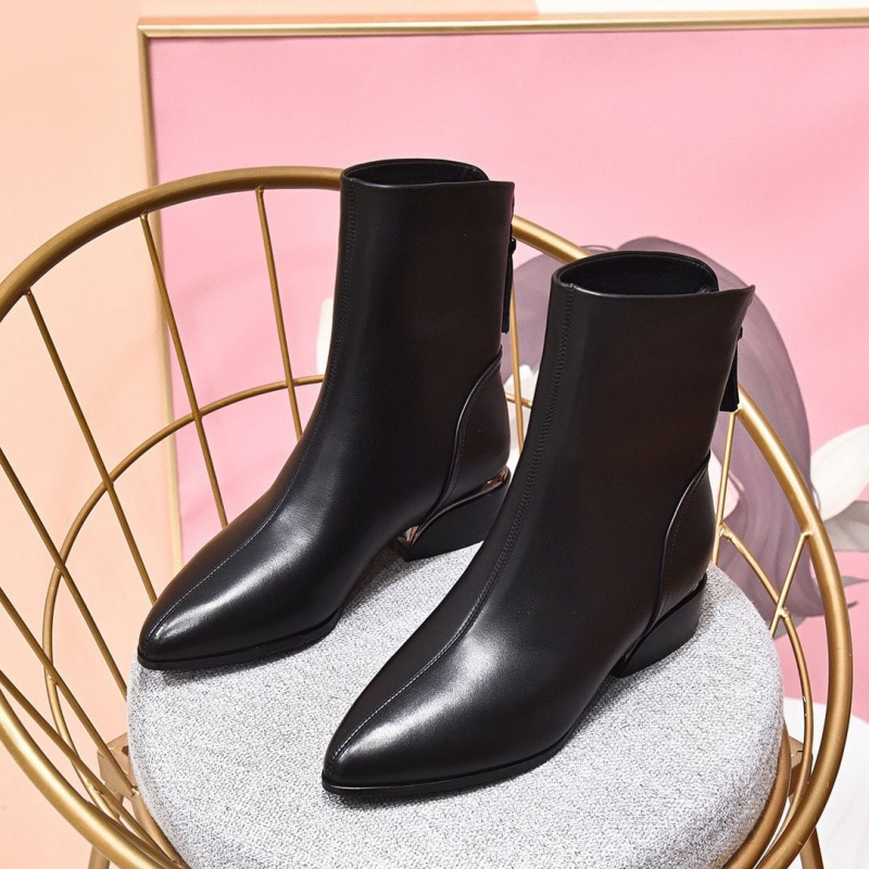 皮质鞋中筒靴女秋冬单靴2025年新款靴子粗跟短靴女高跟女鞋马丁靴