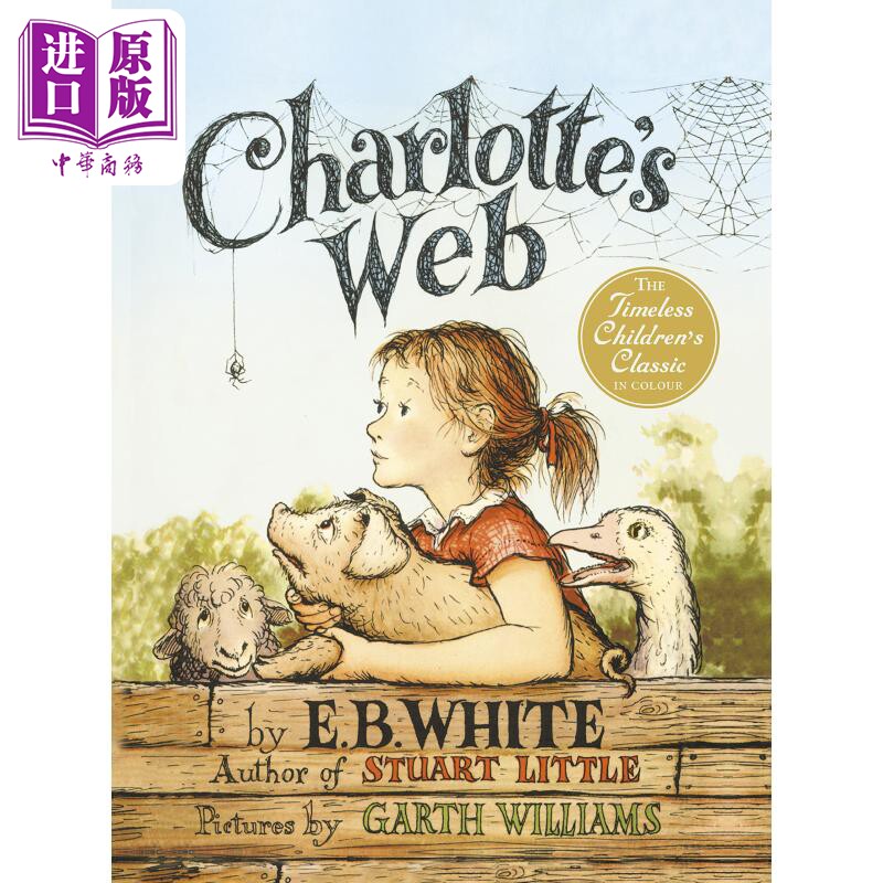 英文英语原版Charlotte's web夏洛的网 夏洛特的网 全彩大开本英版 680L 经典儿童文学英语小说 纽伯瑞奖字体大【中商原版】