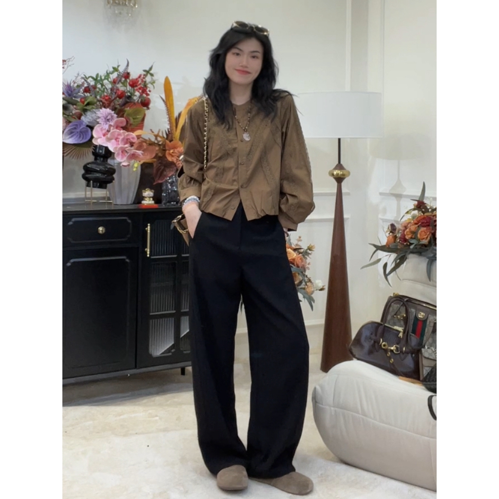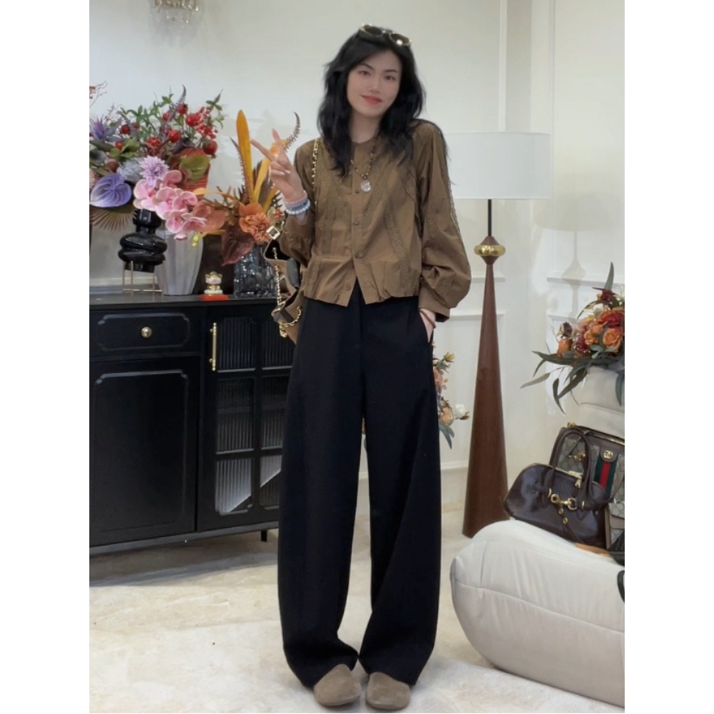 【风吟小巷】法式重工蕾丝拼接条幅衬衫女秋季设计感小众气质上衣