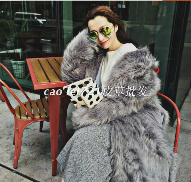 环保皮毛一体大衣女冬季韩版狐狸毛中长款过膝翻领毛毛绒皮草外套