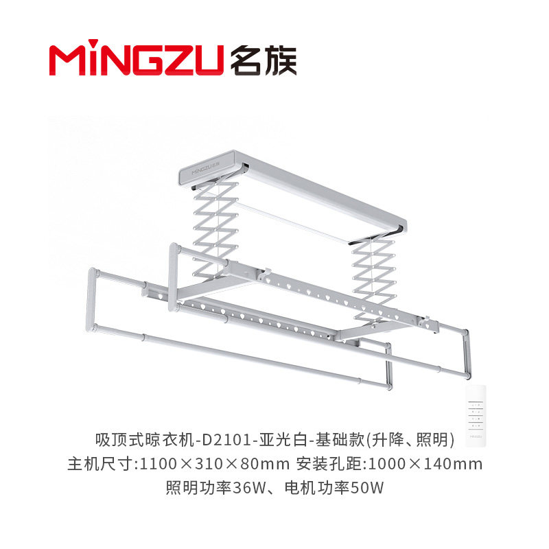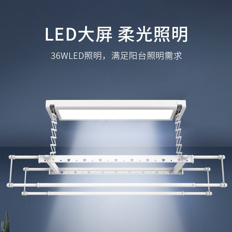 名族智能晾衣架电动晾衣杆遥控升降伸缩晒衣架带照明-D2101