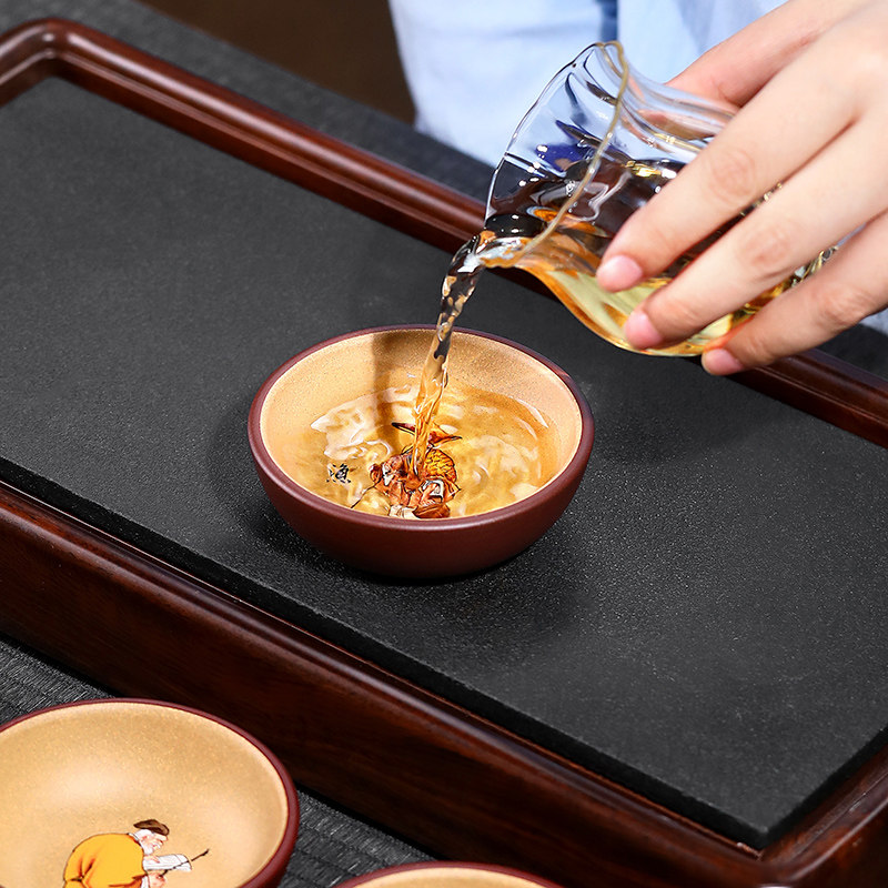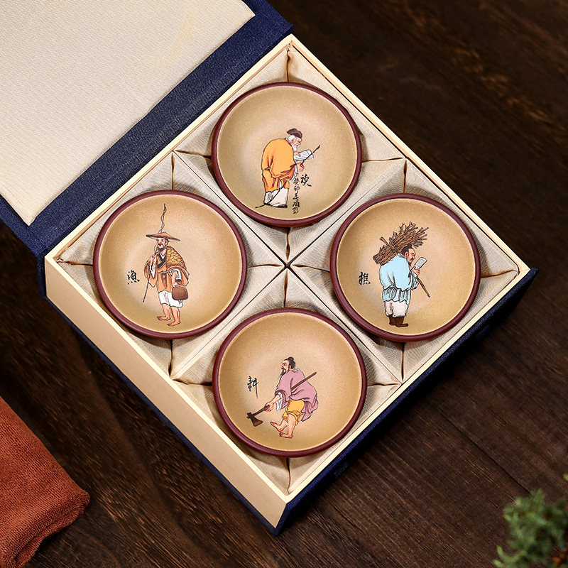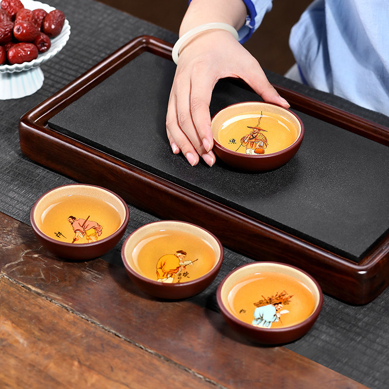 名家原矿紫砂,手工渔樵耕读套杯