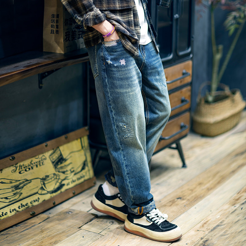 2026春季破洞牛仔裤男宽松潮牌大码锥形裤男生水洗休闲哈伦裤春秋