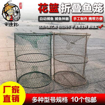 捕黑鱼笼花篮鲫鱼黑鱼专用渔网折叠渔网自动捕鱼笼手工竹篮甲鱼