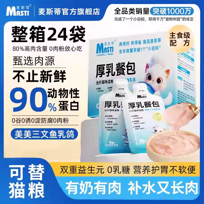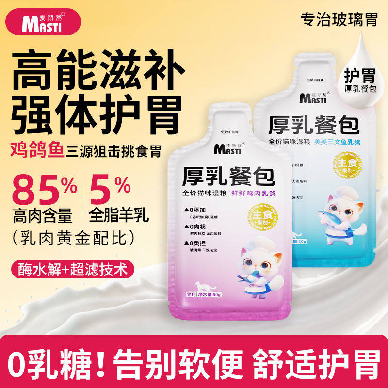 麦斯蒂主食级羊奶厚乳餐包乳鸽肉酱包营养护胃成幼猫通用猫咪零食