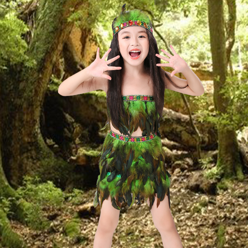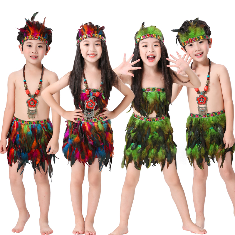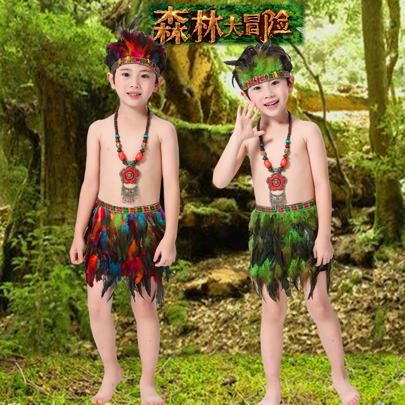 儿童猎人演出服装野人服装非洲部落舞蹈服装男女印第安人舞台服装