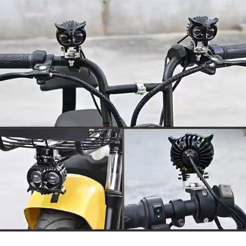 摩托猫头鹰射灯h黄白双光切线LED前双色大灯远近光电动车改装雾灯