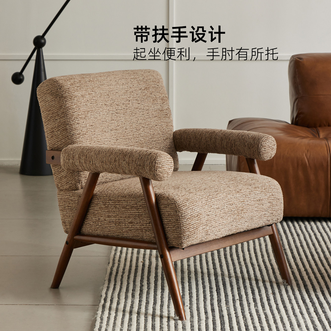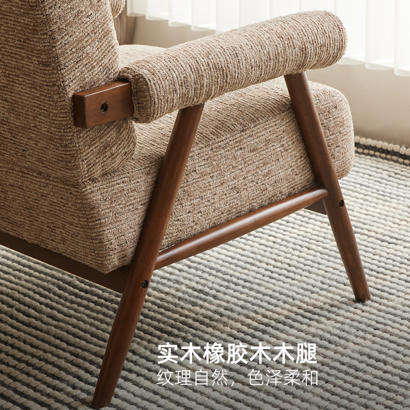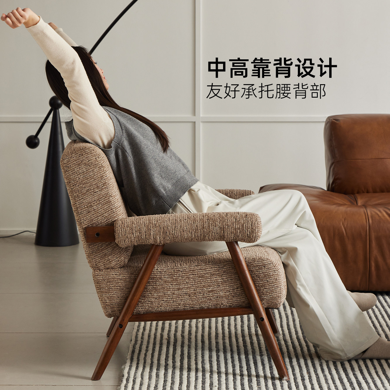 摩尔单人沙发复古休闲椅阳台懒人躺椅客厅胡桃木色椅子中古诧寂风