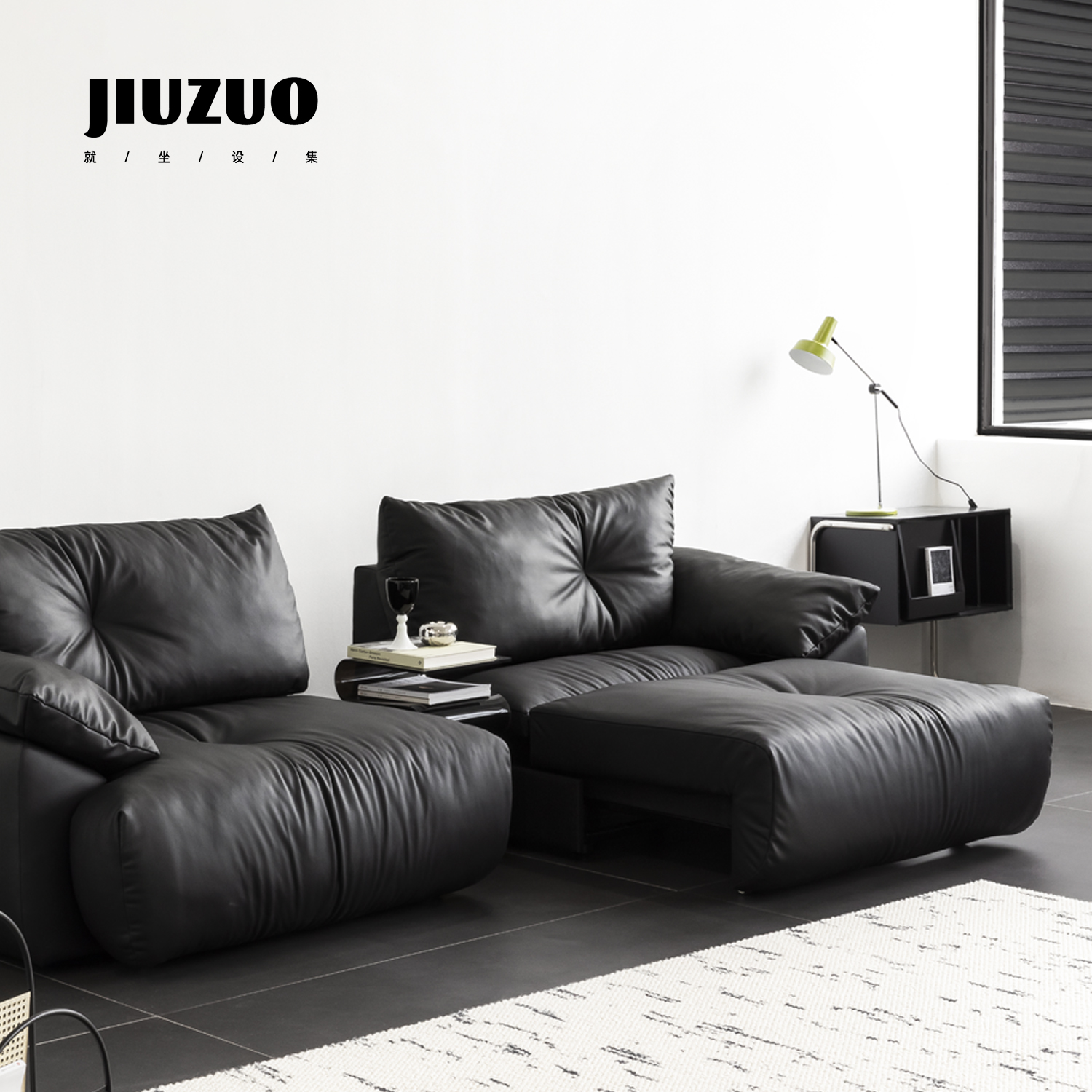 就坐专利电动直排沙发设计师黑色真皮三四人组合落地懒人松弛感