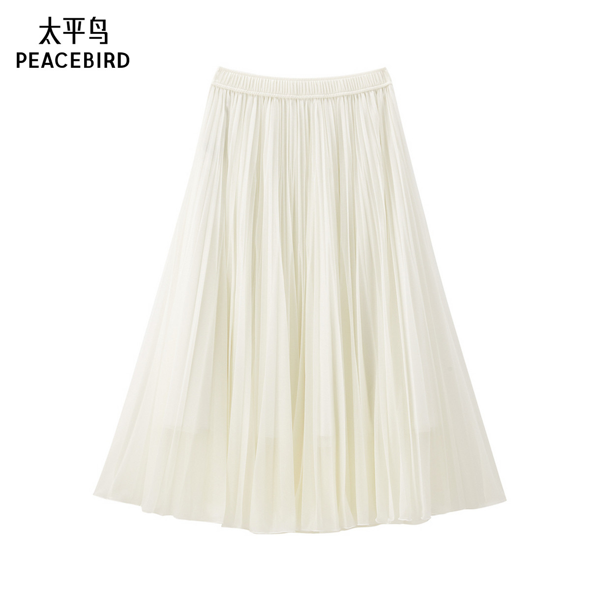 太平鸟女装飘逸柔软半身裙新款伞裙中长款白色A1GFF1531