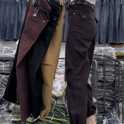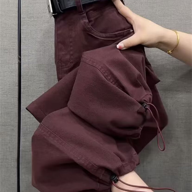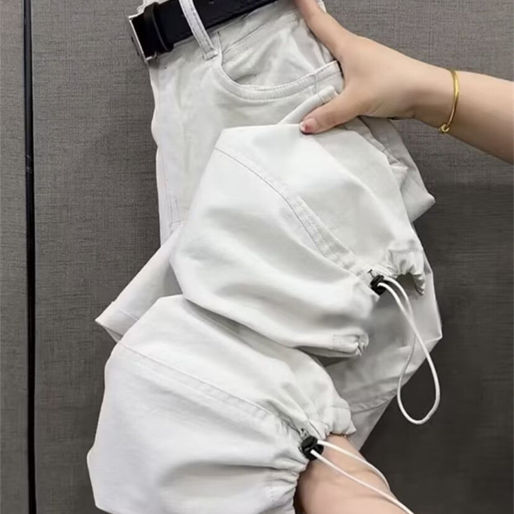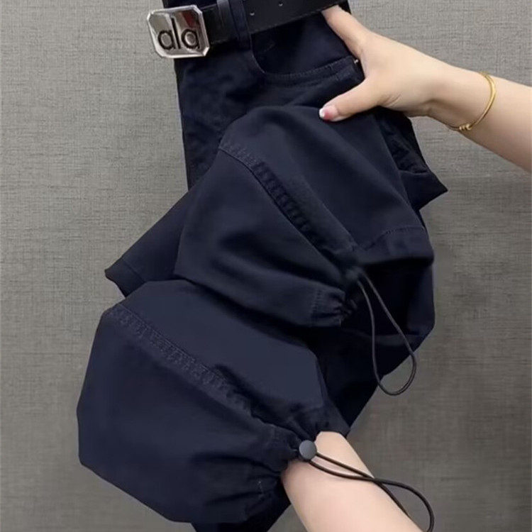 2025秋季新款牛仔裤女高腰显瘦宽松工装休闲裤束脚弯刀九分哈伦裤