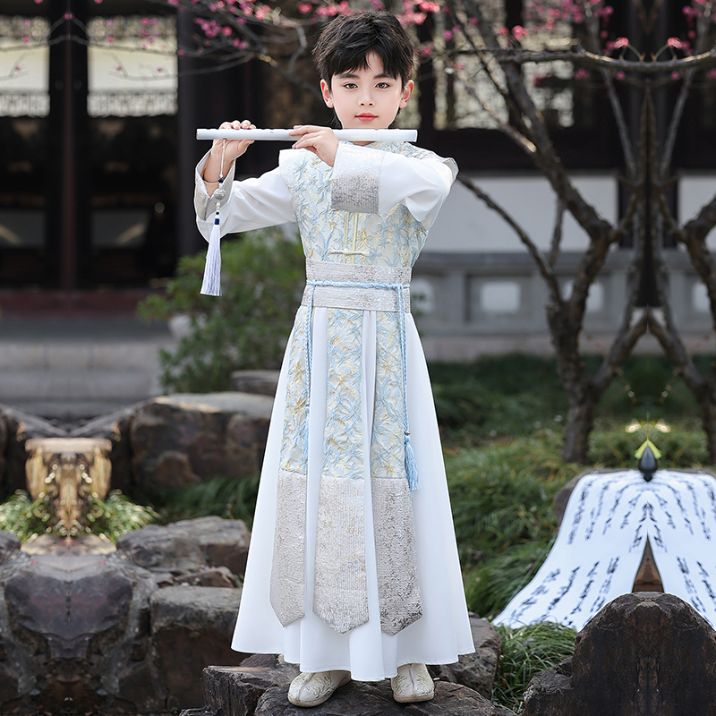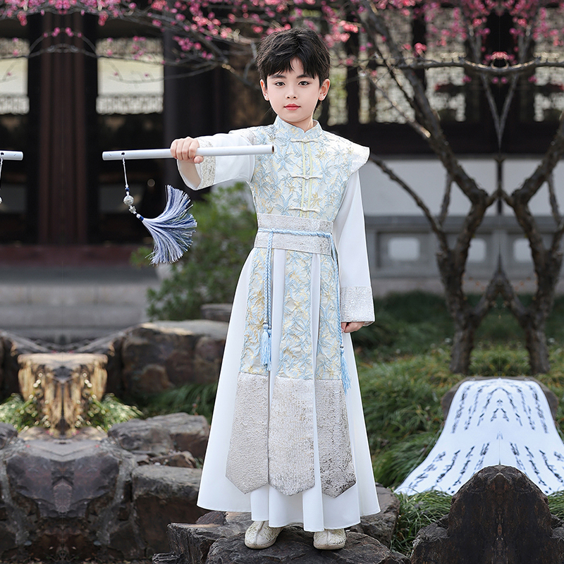 儿童唐装汉服2025新款薄款帅气中式侠客古装少爷男童公子演出服秋