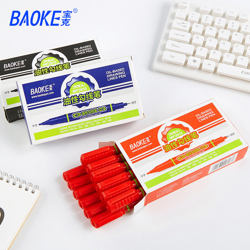 宝克MP2915记号笔油漆笔儿童绘画学生勾线笔黑双头彩色油性笔防水