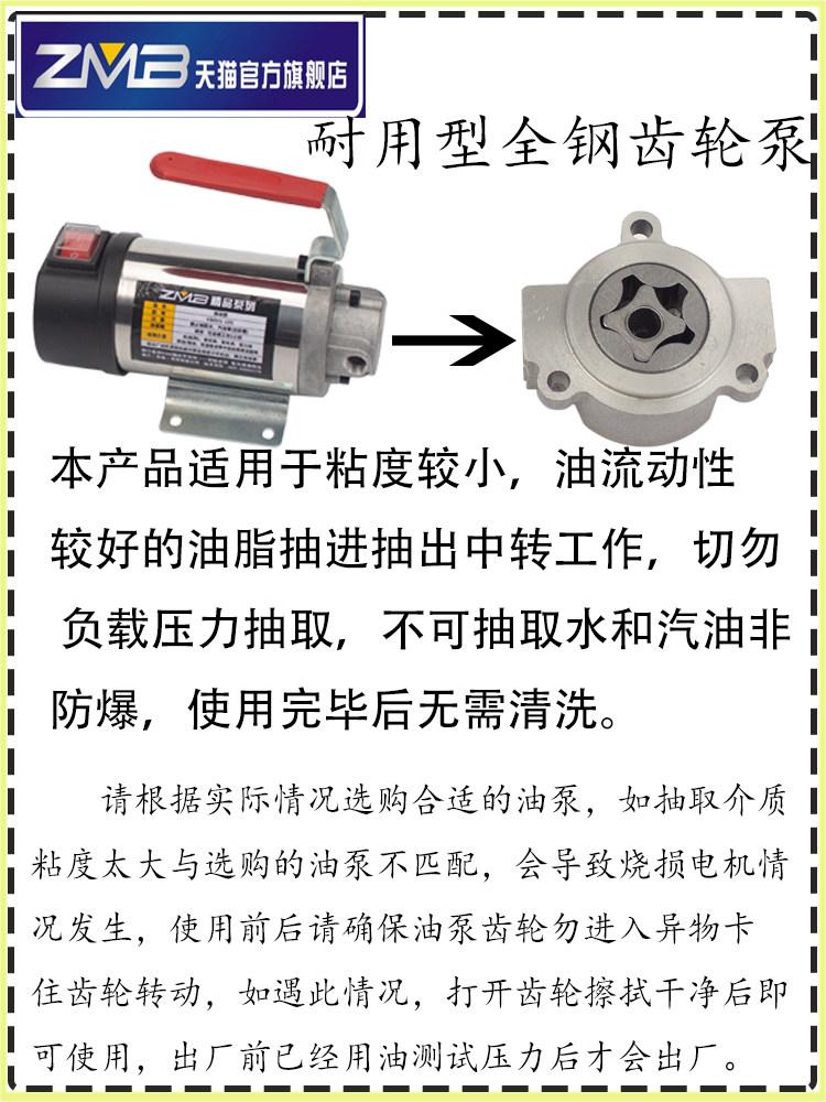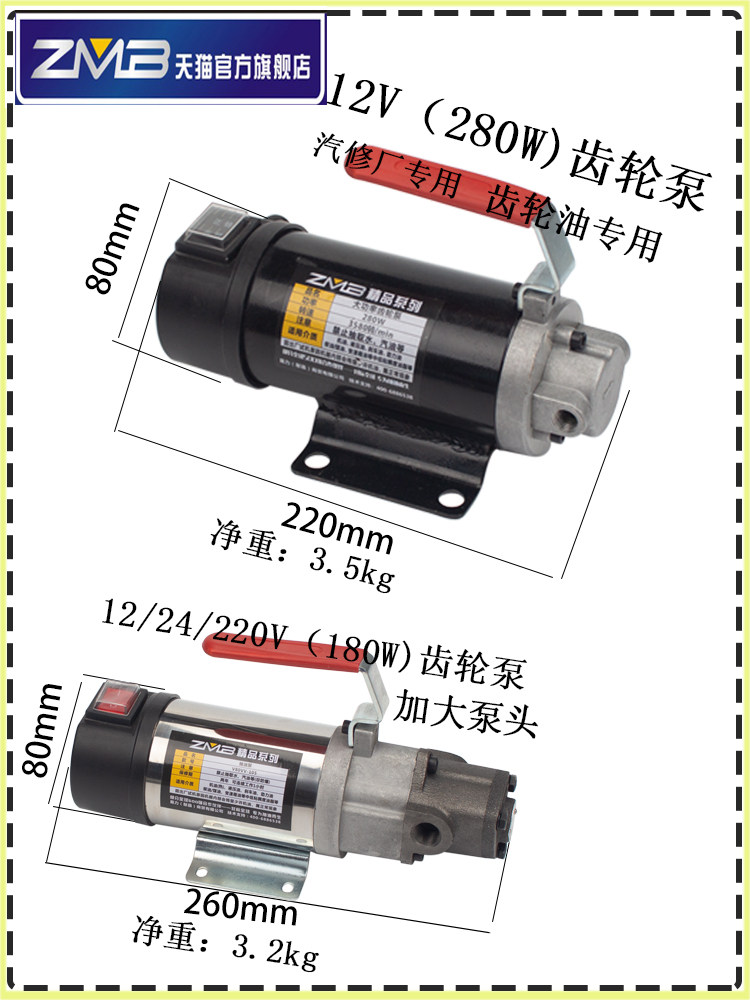 高粘度自吸式齿轮泵电动抽油泵柴油机油食用油液压油直流12V24V
