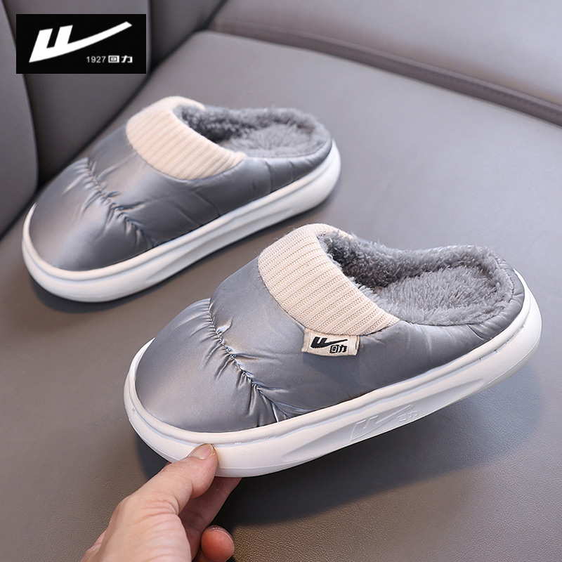 回力儿童棉拖鞋女孩冬季羽绒布防水女童男童2025新款中大童毛棉鞋