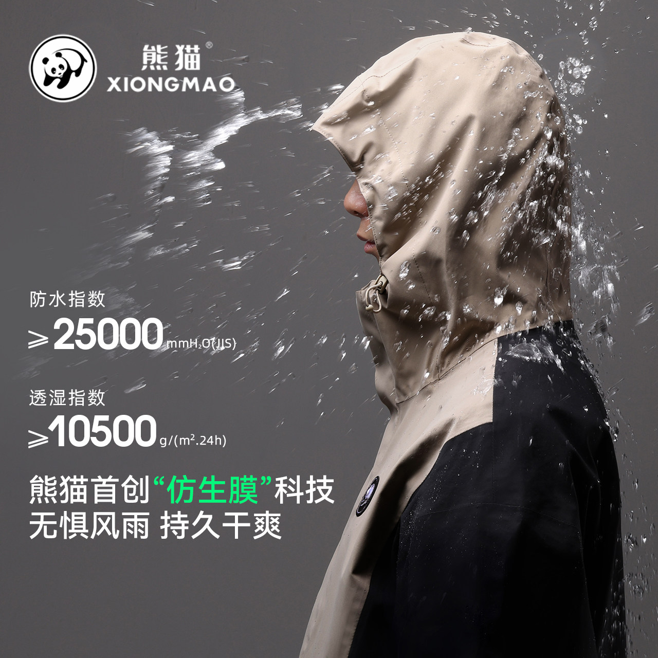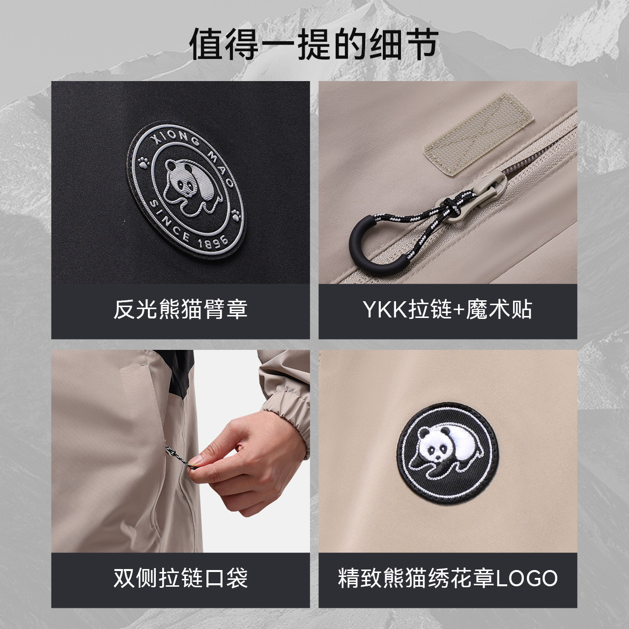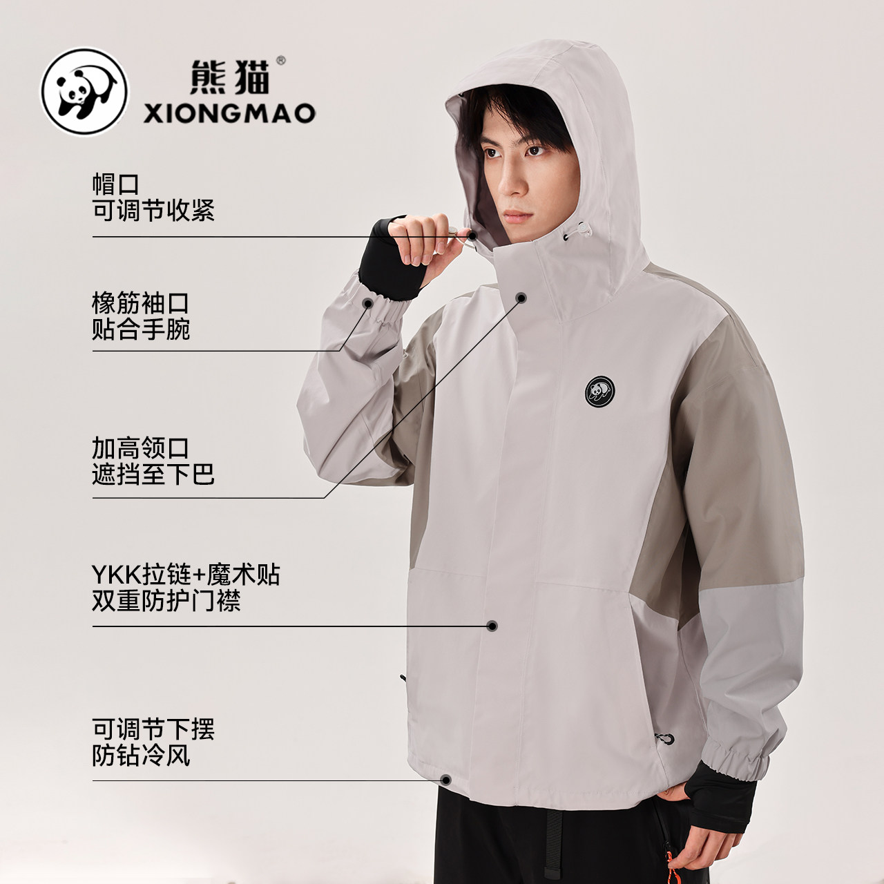 熊猫联名骆驼时尚撞色夹克外套男装2025新款防水防风冲锋衣骑行服