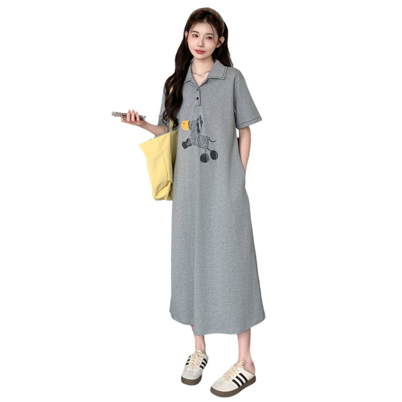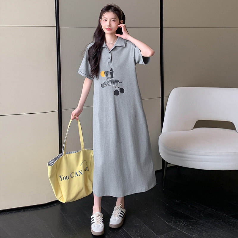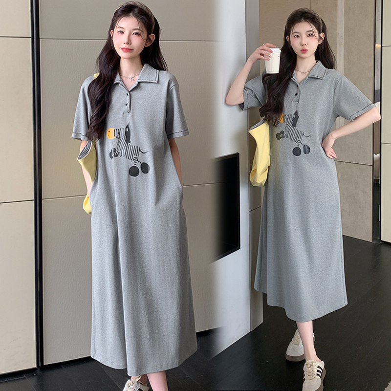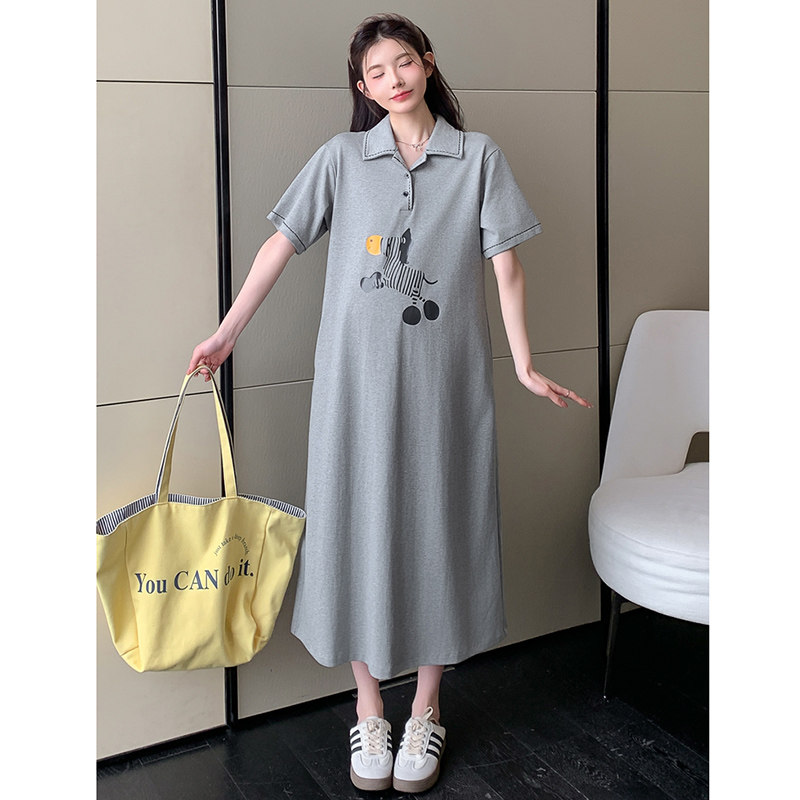 孕妇装夏天裙子中长款时尚宽松大码POLO领T恤薄款孕期短袖连衣裙