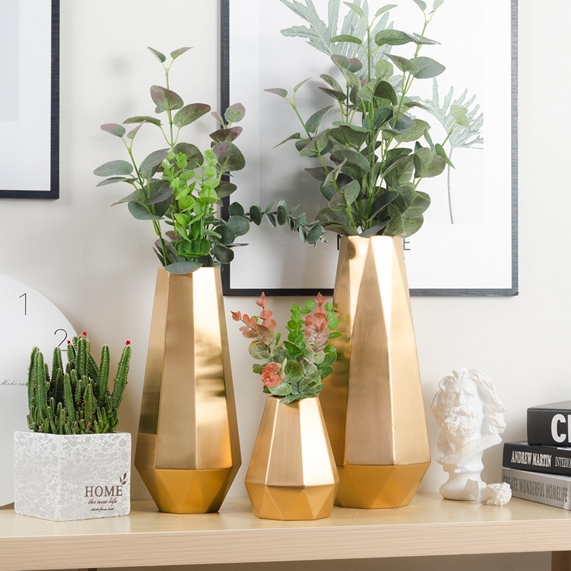花瓶仿铜干花软装摆件家居饰品客厅插画北欧欧式创意花器轻奢ins