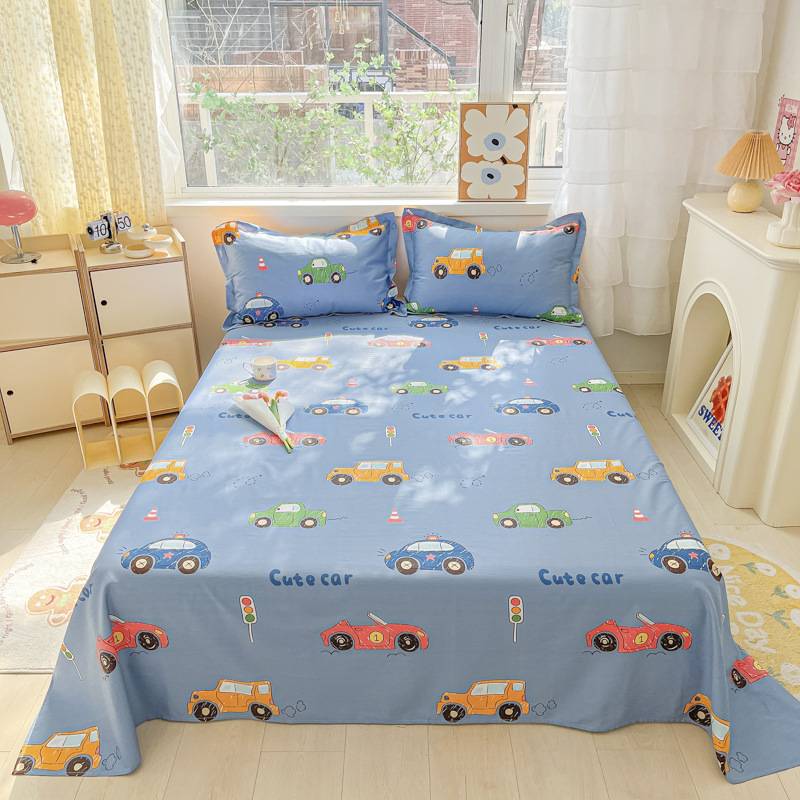 全棉印花四件套儿童可爱卡通被套床单水洗棉学生纯棉三件套床笠款