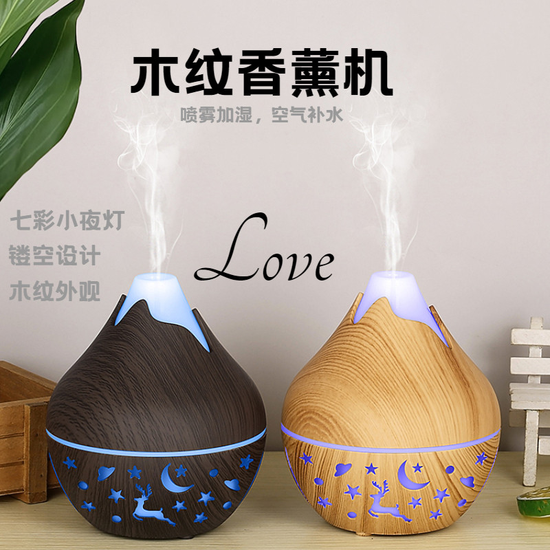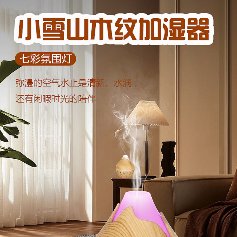 迷你香薰加湿器USB仿木纹七彩灯喷雾香薰机精油香氛空气加湿喷香