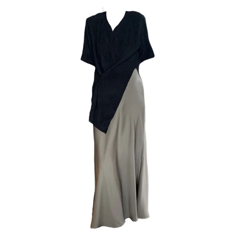 大码胖mm设计感不规则短袖T恤女夏季包臀鱼尾半身裙显瘦两件套装