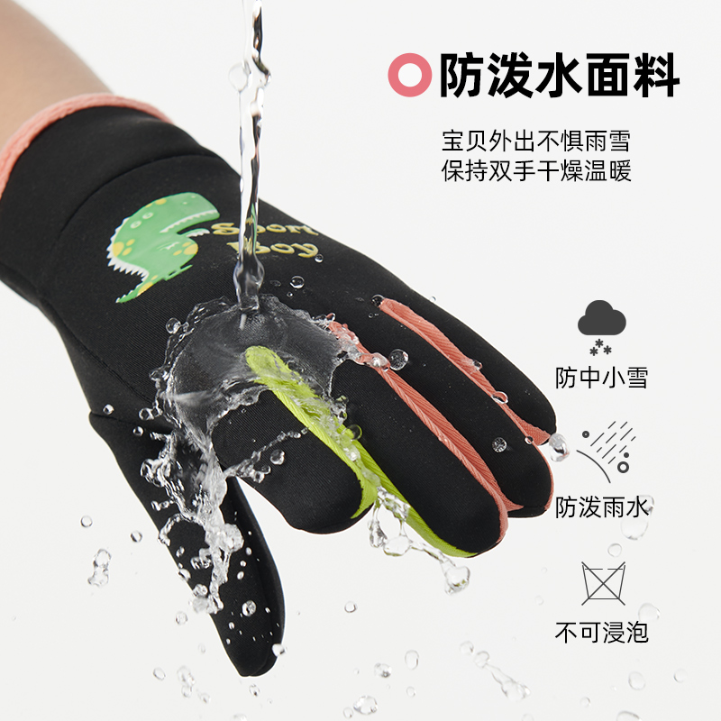 儿童手套秋冬季加绒保暖小学生男童女孩加厚骑车防风防水户外骑行