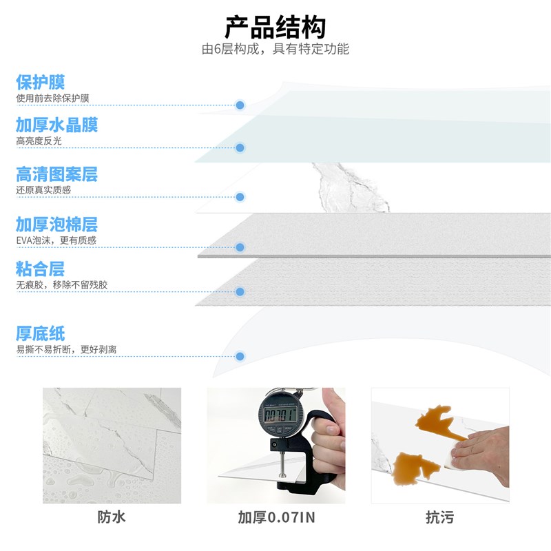 大理石瓷砖贴墙面装饰厨房浴室防水防油墙纸自粘加厚防撞泡棉墙贴