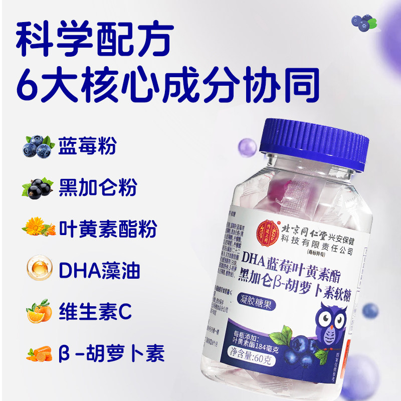 北京同仁堂蓝莓叶黄素酯软护官方店正品儿童成人眼睛软糖旗舰店