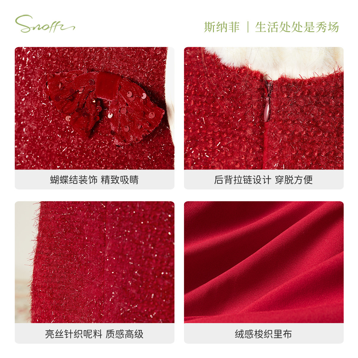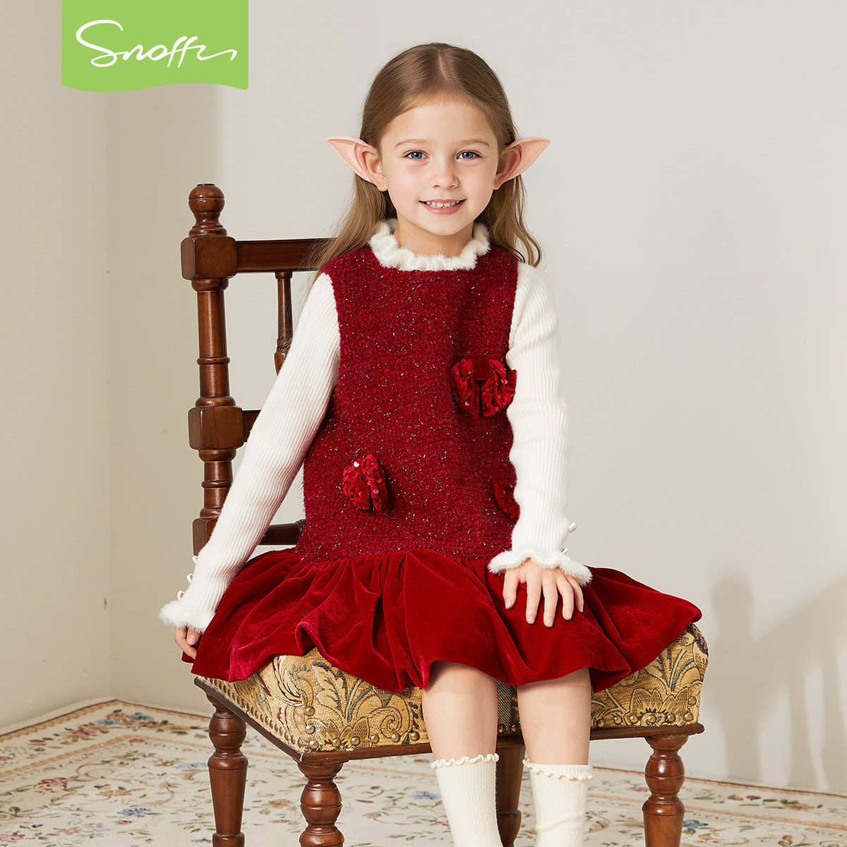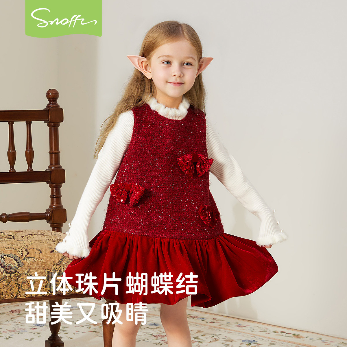斯纳菲女童连衣裙25冬装新款儿童公主裙新年红色加绒拜年服背心裙