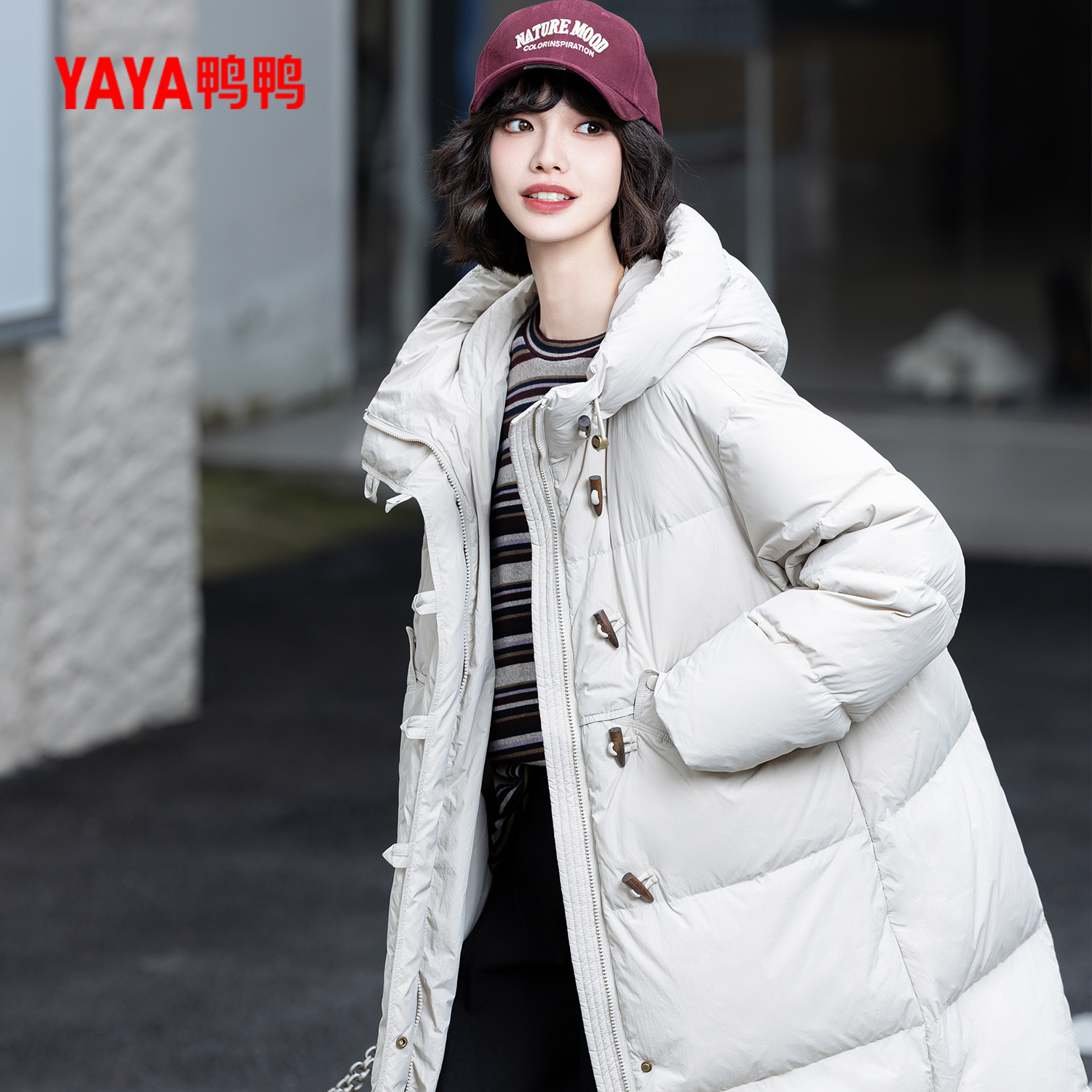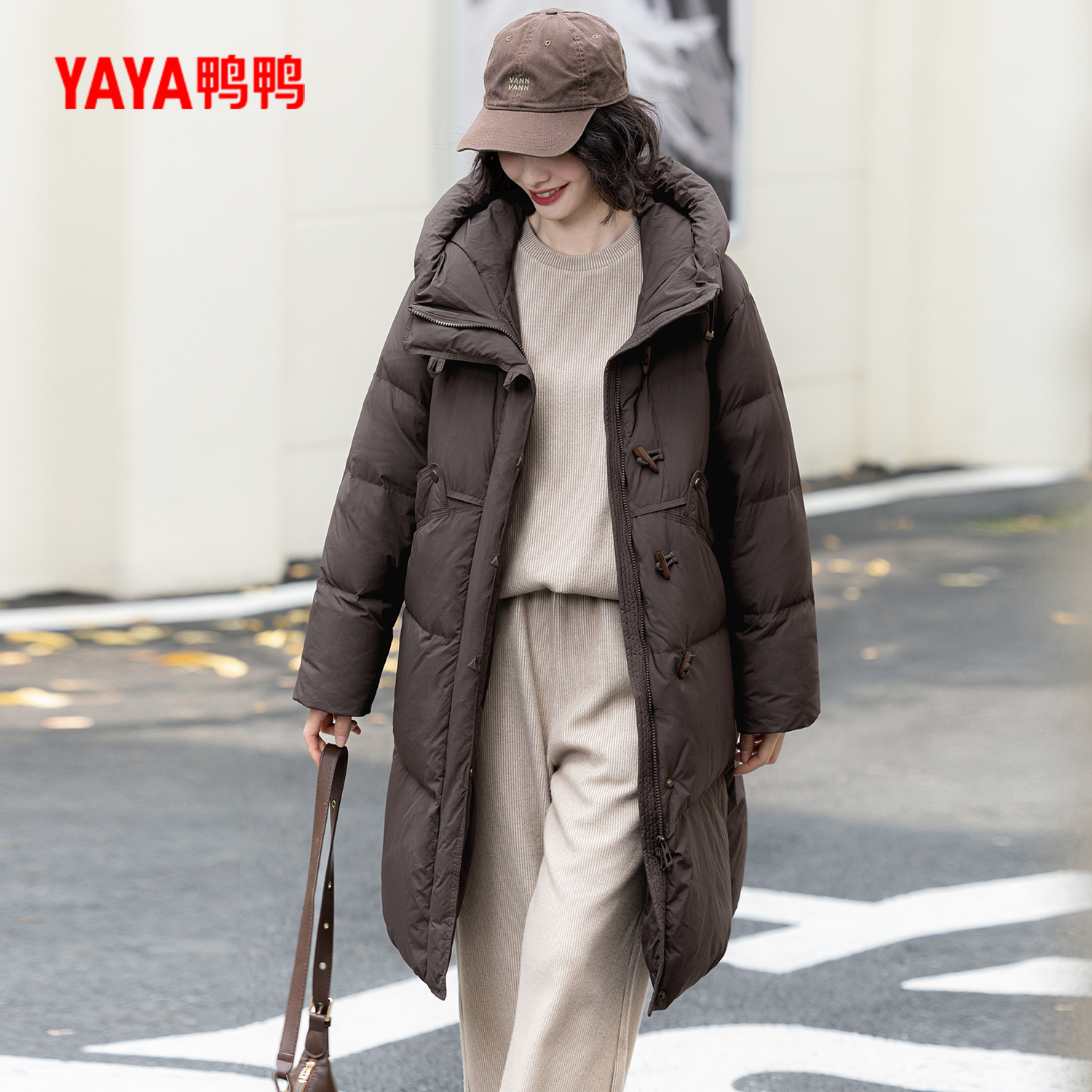 YAYA鸭鸭2024冬季新款时尚百搭休闲连帽百搭加厚女士长款羽绒服