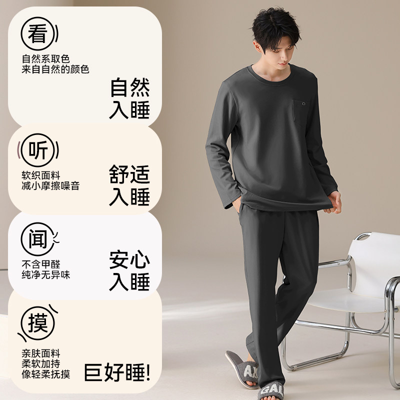 猫人纯棉男士睡衣男款春秋季长袖全棉2026新款可外穿家居服套装