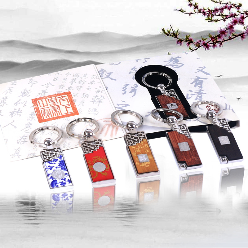 中国民族风复古典青花瓷汽车钥匙扣女钥匙圈环古风金属挂件高档实用创意小礼品公司会议年会商务礼品送客户