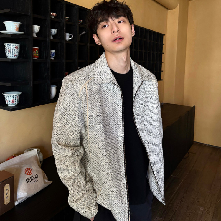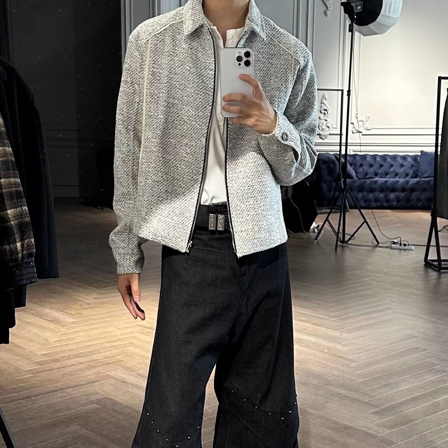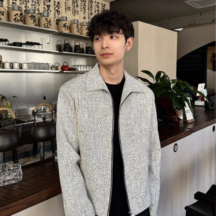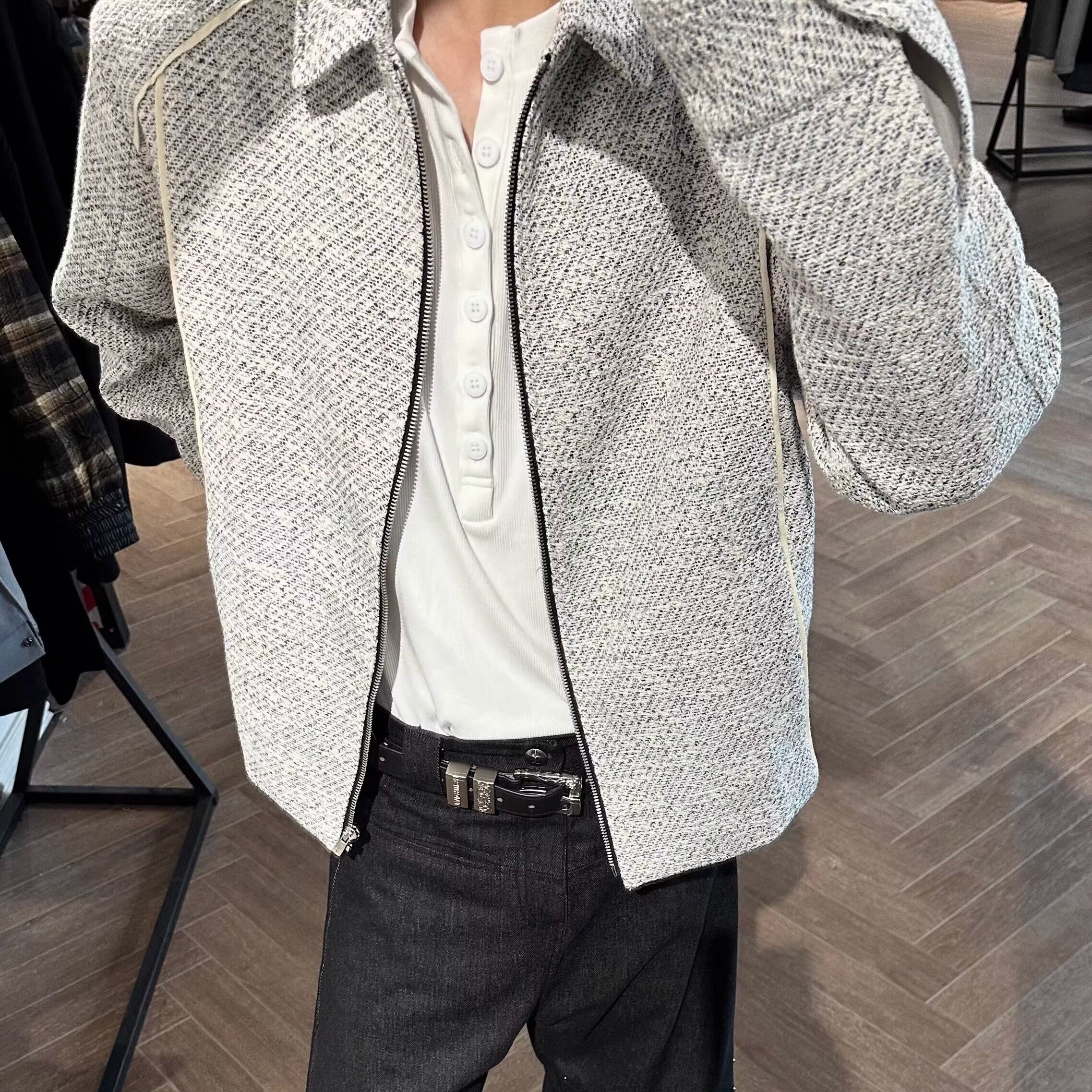 ICE UP日产灰白编织粗花呢小香风百搭通勤夹克短款宽松拉链外套