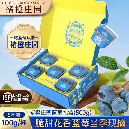 褚橙庄园金标蓝莓年货礼盒500g花香蓝莓鲜果大果脆甜新鲜鲜采直发