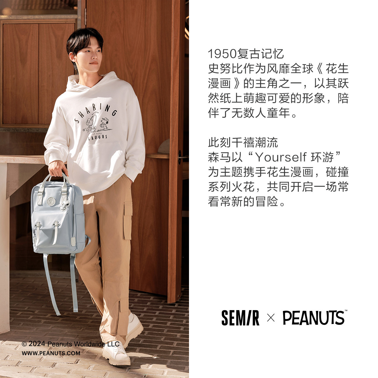 森马双肩包女史努比系列2024新款大容量电脑包情侣背包校园风书包