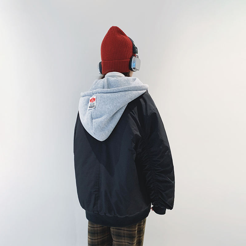 女大童棒球服2024冬装新款初中生女孩时髦夹棉加厚连帽休闲外套潮
