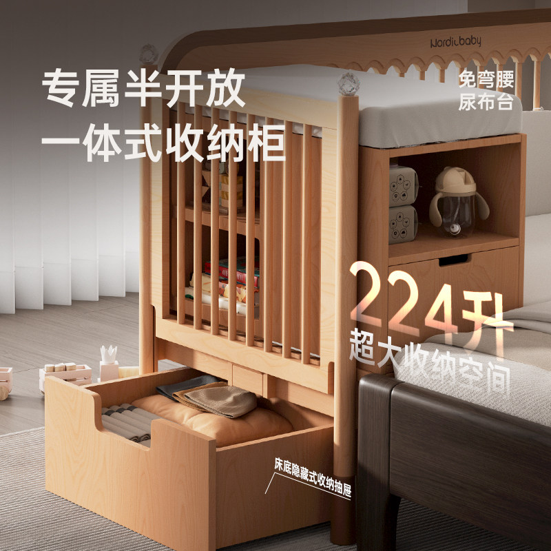 Nordicbaby北欧宝贝加宽床边拼接床儿童小孩无缝婴儿实榉木可升降