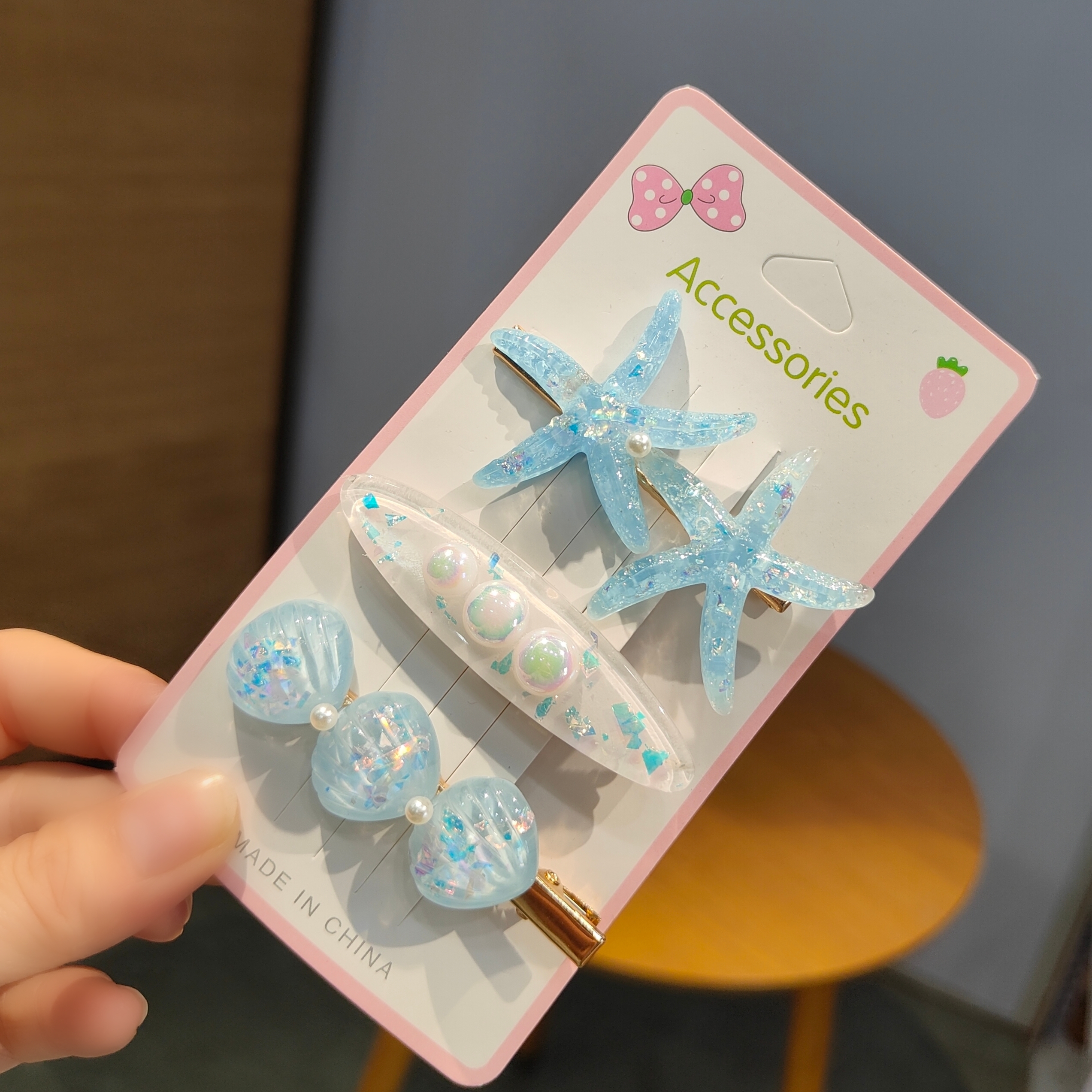 侧边发夹女儿童可爱海洋主题蓝色发饰海星贝壳刘海碎发卡子鸭嘴夹