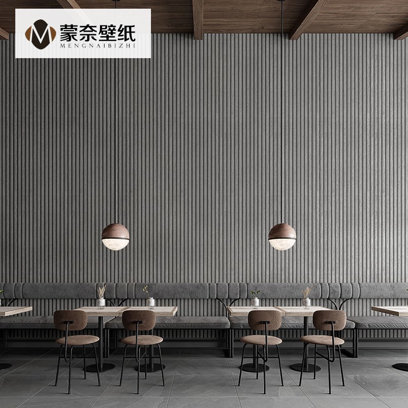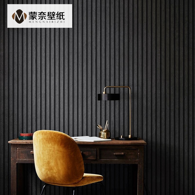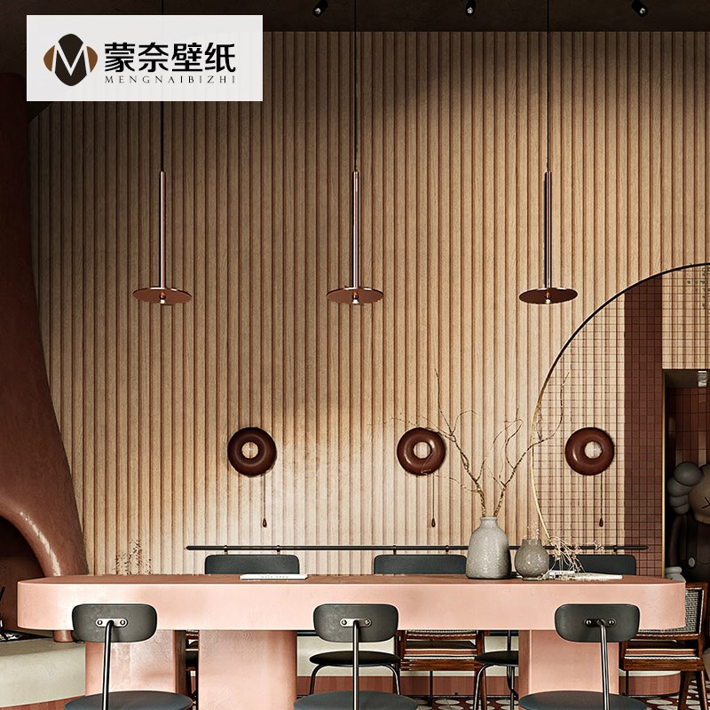 复古中式古风木纹格栅墙纸非自粘客厅卧室餐厅背景墙壁纸店铺装修