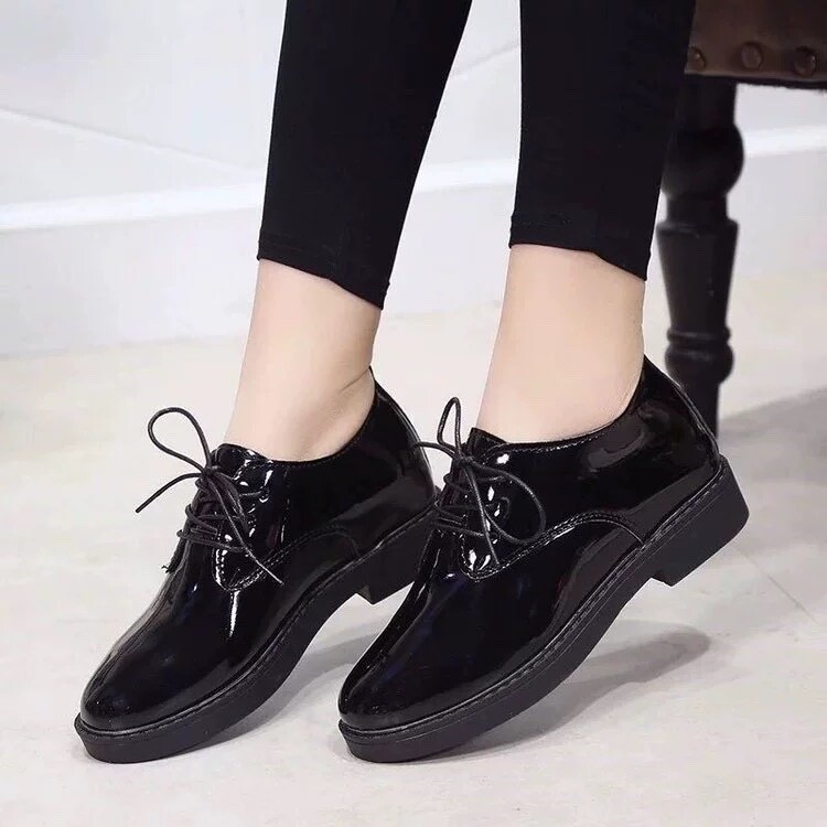 断码清仓品牌鞋真皮单鞋女秋季新款英伦风系带百搭工作平底小皮鞋