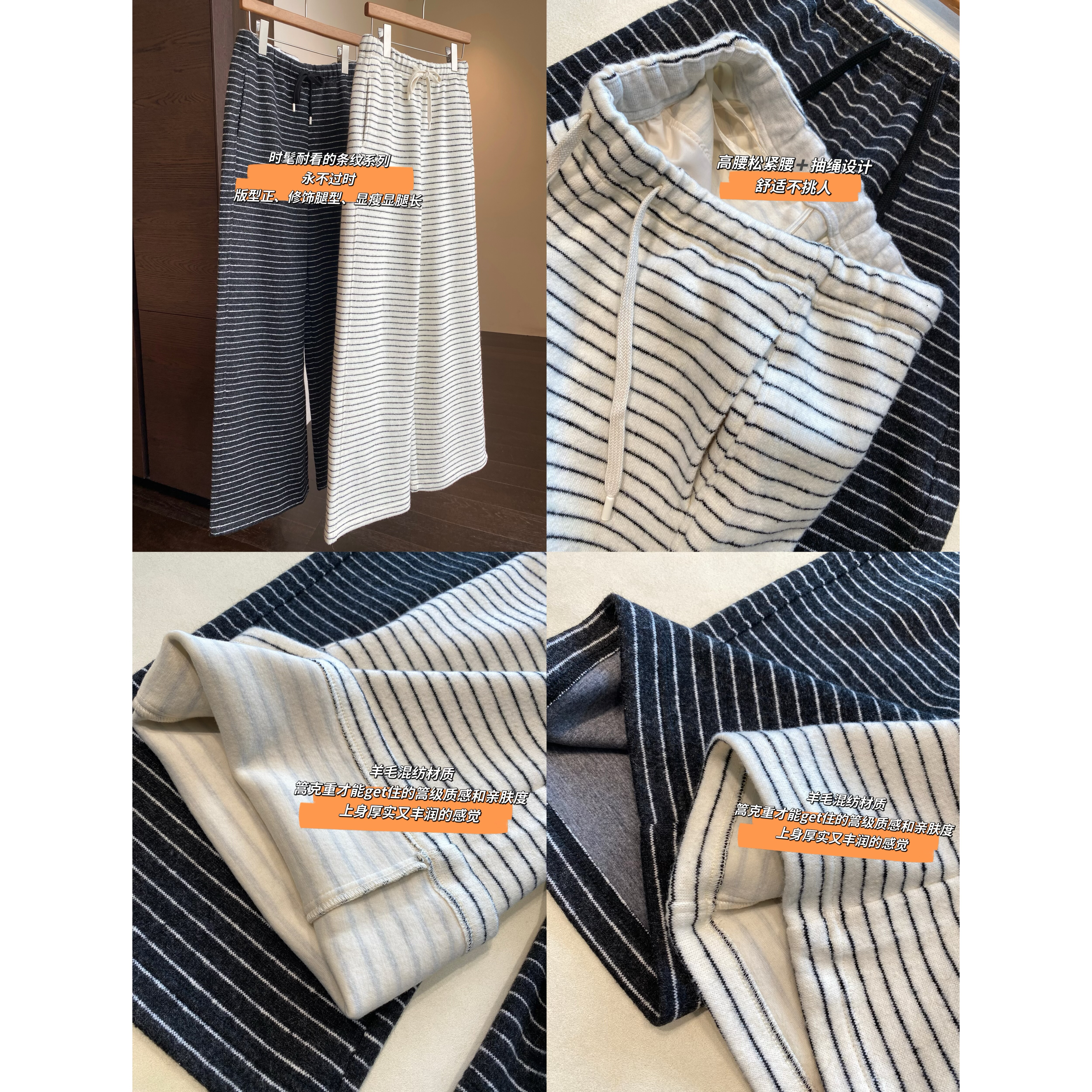 AMR UU◆慵懒风高腰宽松厚保暖条纹休闲直筒阔腿裤女2025秋冬新款