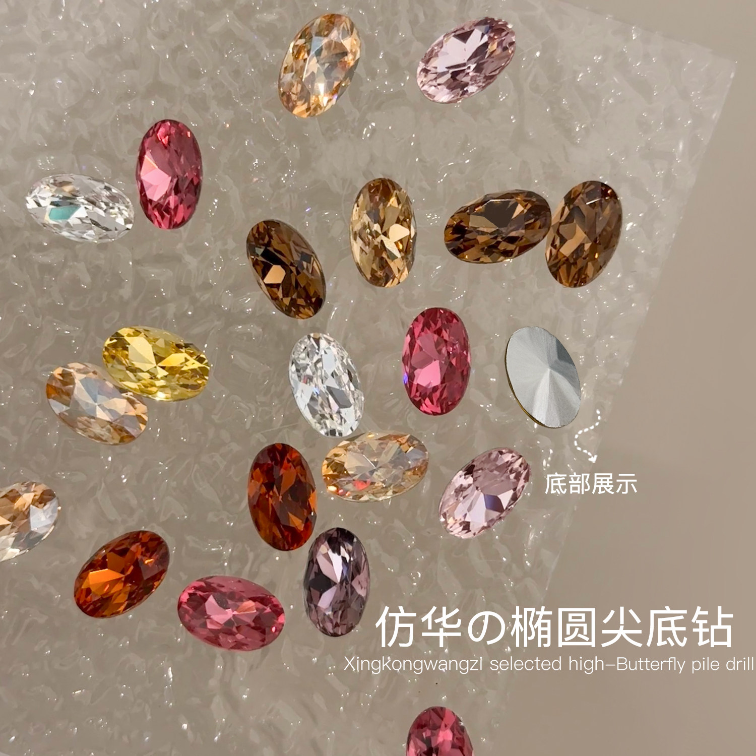 高质美甲大钻仿华椭圆尖底钻爆闪瘦鸽子蛋异形钻指甲堆钻饰品2颗