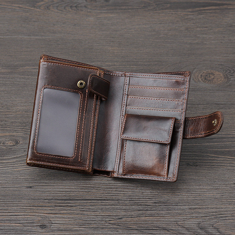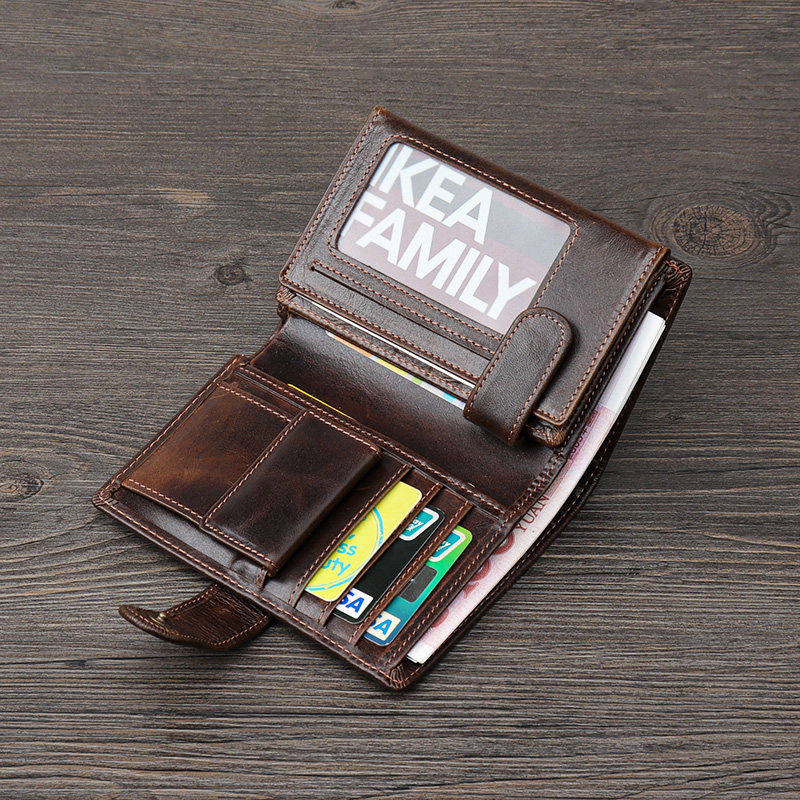 新款男士钱包多卡位油皮复古休闲短款零钱包头层真皮男包折叠