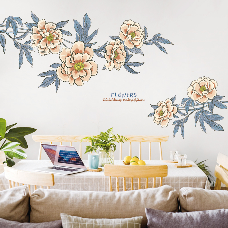 大型复古水墨花卉客厅沙发电视背景墙贴画温馨卧室床头装饰品贴画