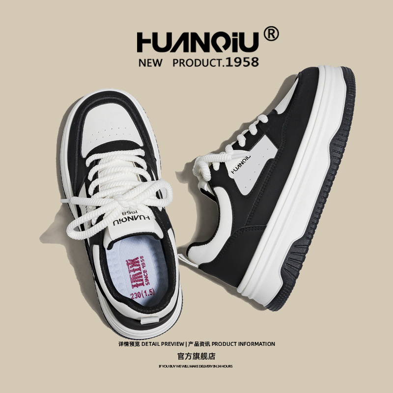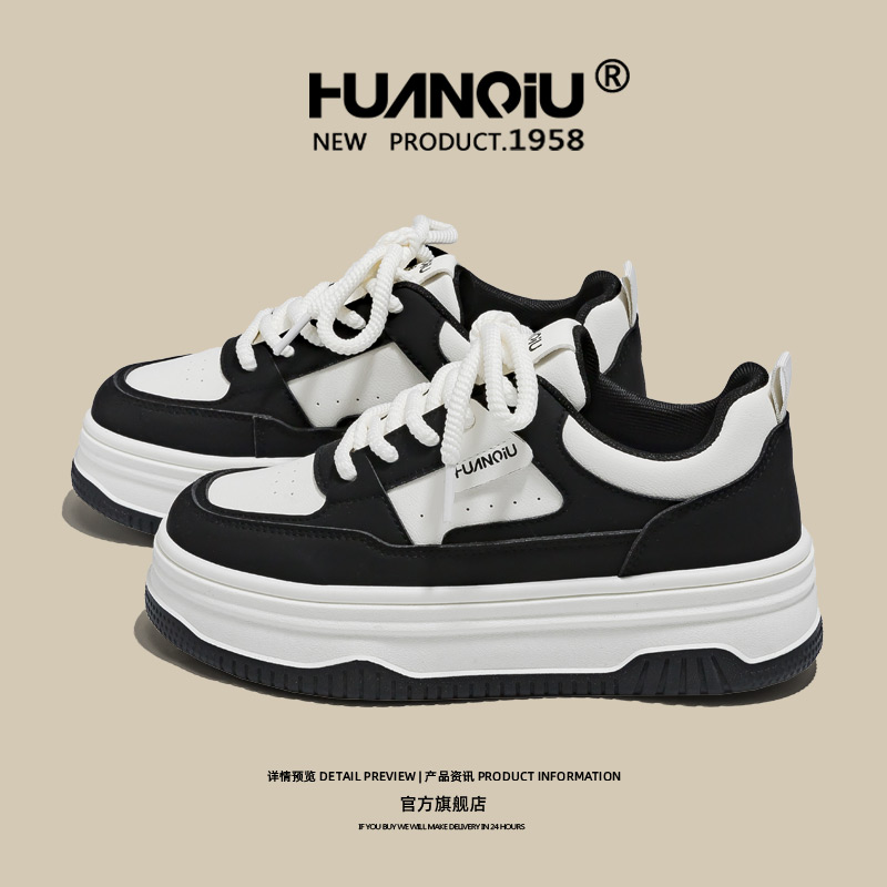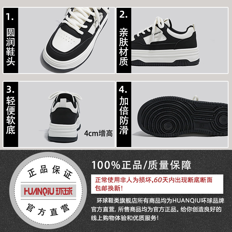 环球官方旗舰店经典黑白款小白鞋子女小众百搭板鞋厚底增高休闲鞋