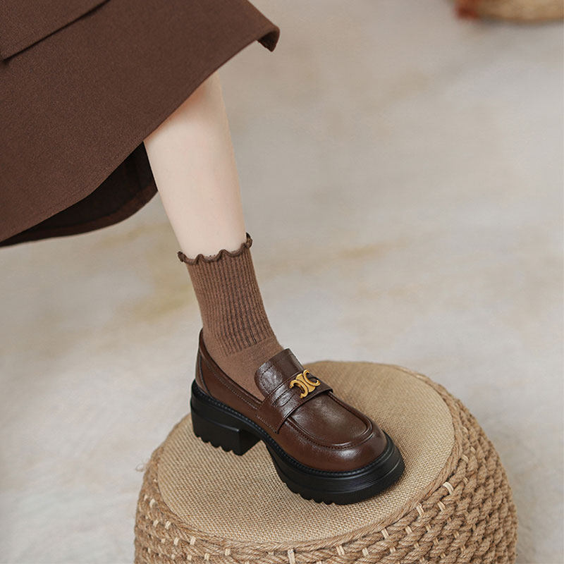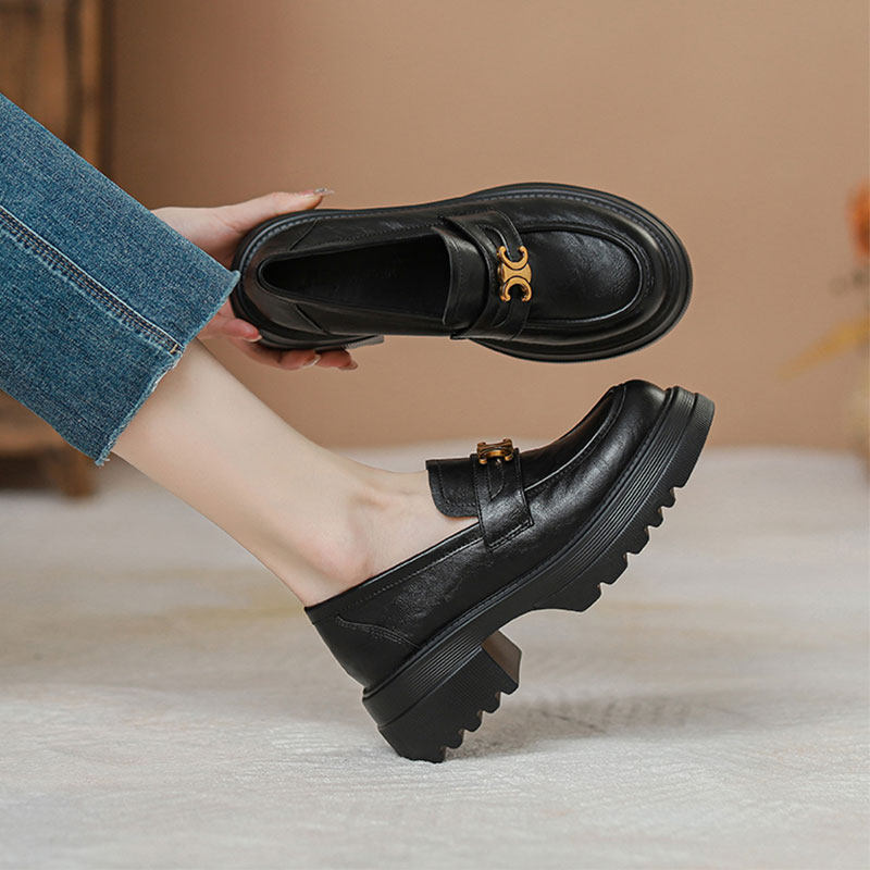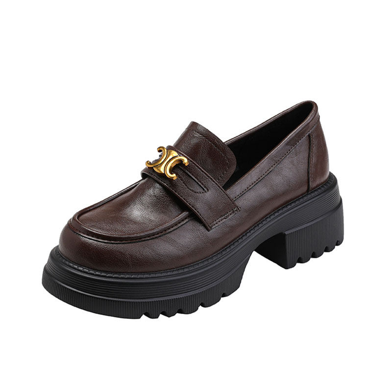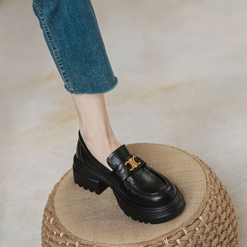 增高6cm~真皮厚底乐福鞋女2025新款一脚蹬圆头单鞋子英伦风小皮鞋