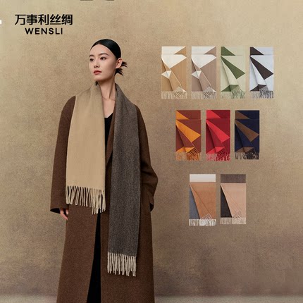 万事利秋冬新款保暖绵羊毛围巾女冬季外搭加厚披肩围脖男女情侣款