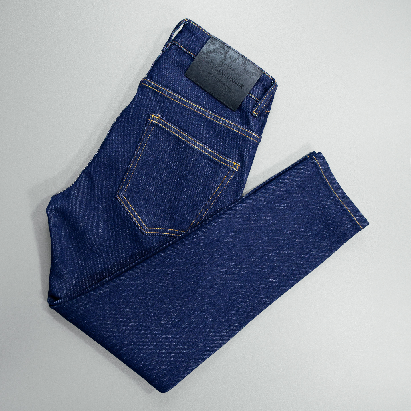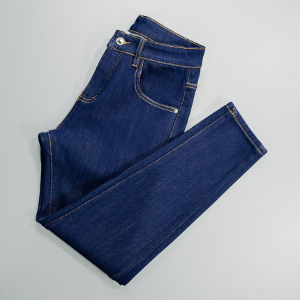 防褪色九分牛仔裤男士高级四面弹力海蓝色潮流百搭修身小脚牛仔裤